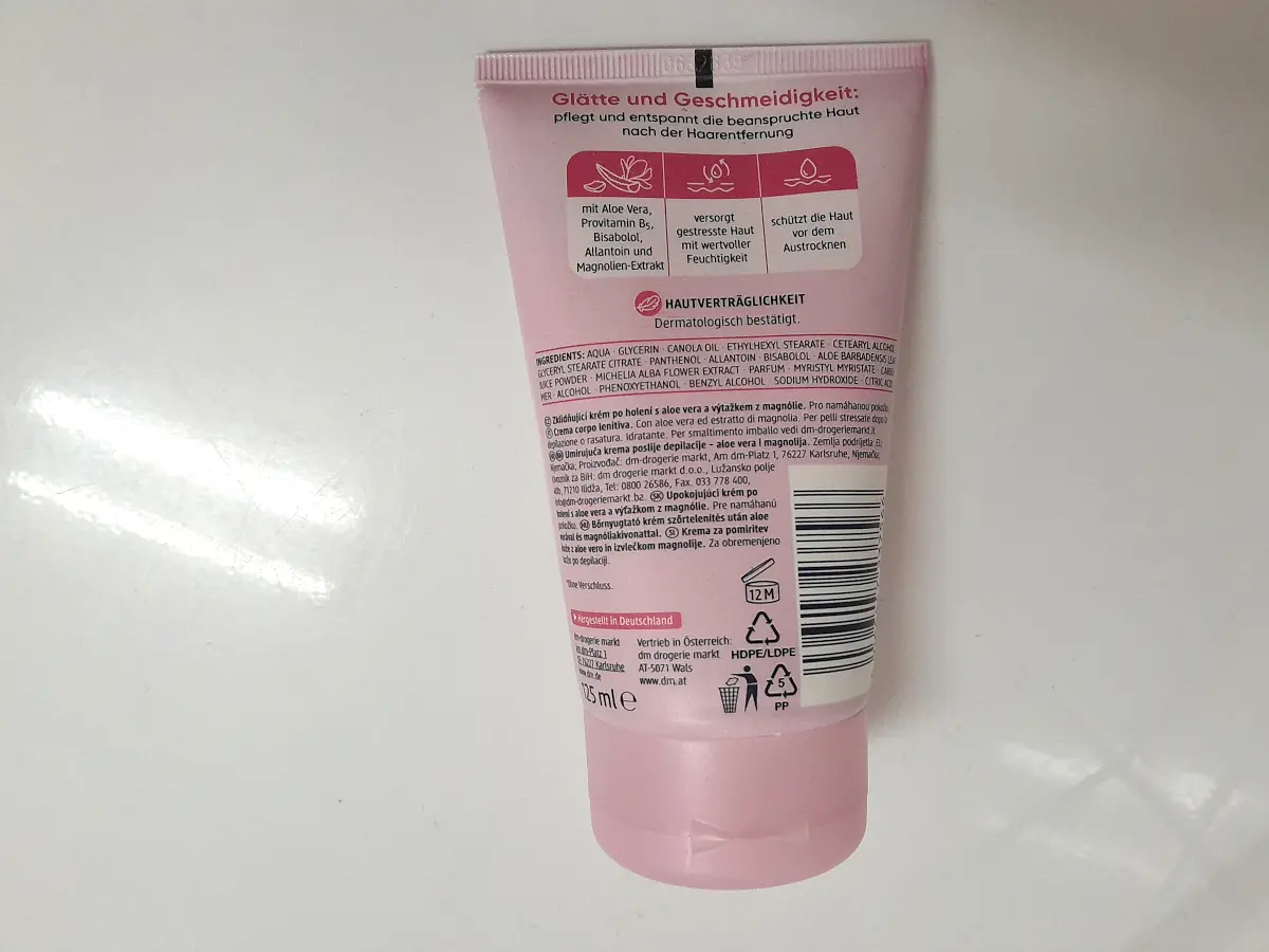 Aqua, glycerin, ethylhexyl stearate, canola oil, cetearyl alcohol, glyceryl stearate citrate, phenoxyethanol, parfum, myristyl myristate, benzyl alcohol, carbomer, allantoin, bisabolol, alcohol, sodium hydroxide, aloe barbadensis leaf juice powder, citric acid, michelia alba flower extract.