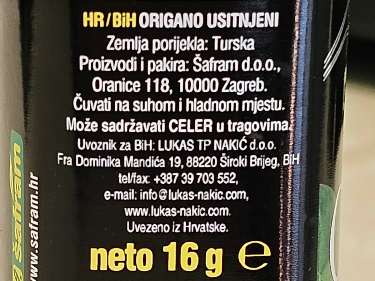 Origano usitnjeni 16 g